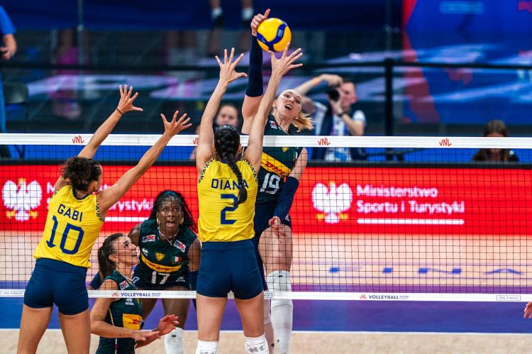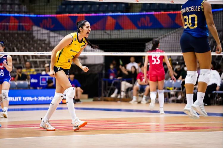 Um dos reforços do Sesi Vôlei Bauru para a temporada 2025/26, Diana Duarte foi vice-campeã da Liga das Nações de Vôlei (VNL) junto com a Seleção Brasileira no último domingo, 27, em decisão contra a Itália. A central da equipe bauruense foi um dos destaques da seleção na fase final, sendo a quarta maior bloqueadora das eliminatórias, com 10 pontos no fundamento.