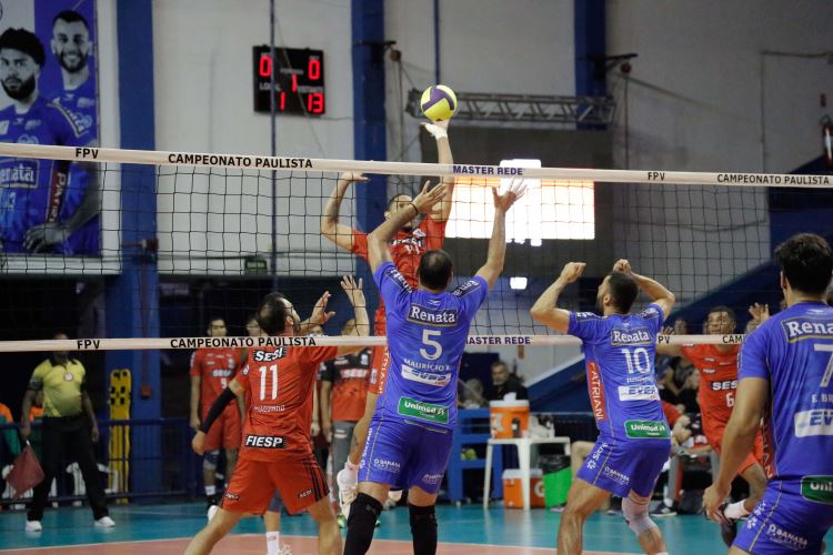 Já o Sesi Vôlei venceu o Vôlei Renata/Campinas por 3 a 2 (18/25, 28/26, 21/25, 25/23 e 12/15) na última rodada da fase de classificação do estadual masculino. Com o resultado, a equipe bauruense terminou a primeira fase com 11 pontos, empatado em pontos com o Farma Conde São José e o Suzano Vôlei.