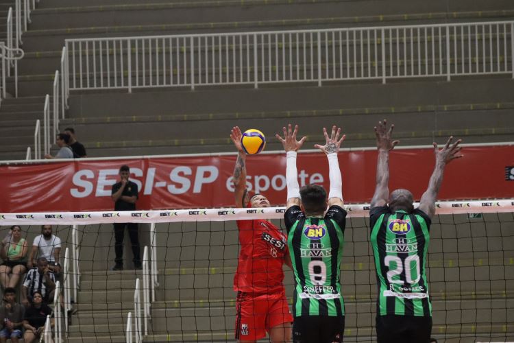 O Sesi Vôlei venceu o Montes Claros América Vôlei por 3 a 0 (25/13, 25/19 e 25/20), nesta sexta-feira, na Arena Paulo Skaf, em Bauru, em duelo da oitava rodada da Superliga Bet7k 2023/2024. Com o resultado, a equipe bauruense agora tem 12 pontos e campanha de quatro vitórias e quatro derrotas.